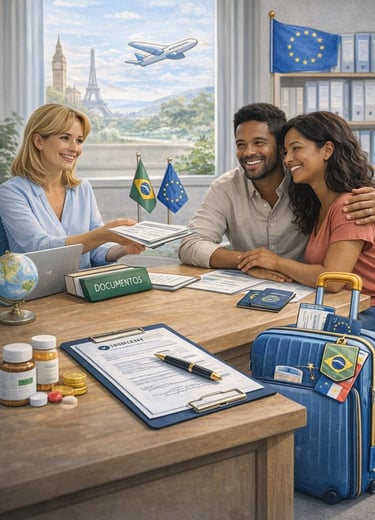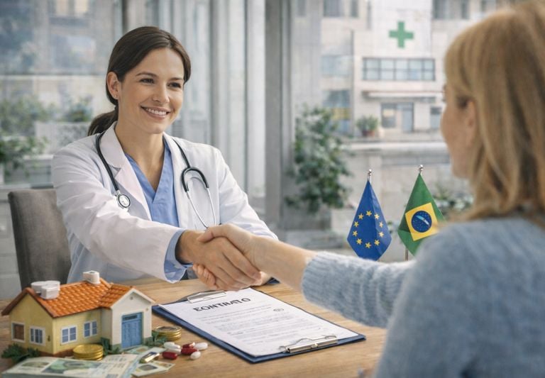 Cuidando de brasileiros na Europa.